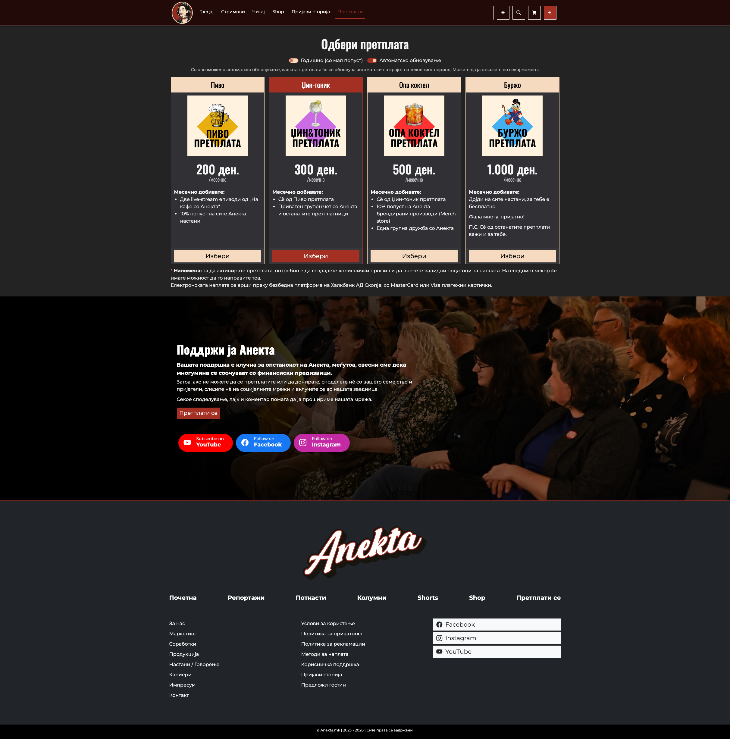- Модул за претплати со автоматски наплати, месечни потсетувања и заклучени содржини за претплатници