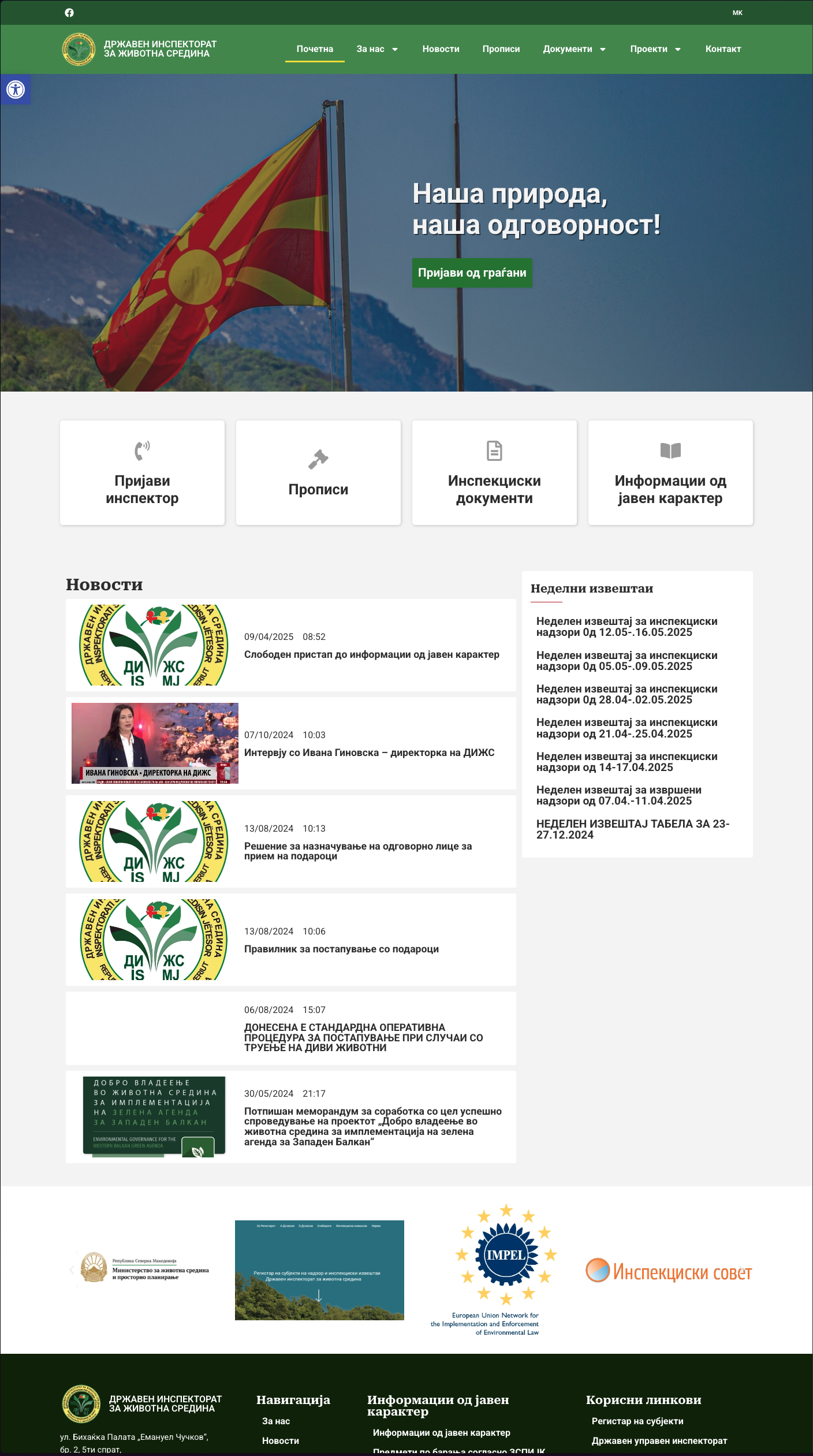 За потребите на Државниот инспекторат за животна средина на Северна Македонија изработивме целосно нова веб-страница, заедно со трансфер на сите податоци од застарената претходна страница. Со ова, ја доближивме институцијата до граѓаните, бидејќи сега сите најнови податоци и инспекциски акти се веднаш достапни за сите.